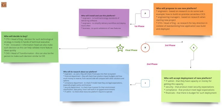 In the second case, the most obvious recommenders would be other CI/CD team leaders who likely struggle with the current platform. However, this group might lack sufficient influence to drive such a decision, as they's far from C-level decision-making. In this scenario, it would be beneficial to identify a second recommender similar to the main recommender in the first case - perhaps a director-level stakeholder whose goals are being hindered by limitations of our current platform.